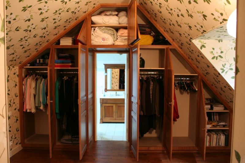 Toutes les portes suivent les rampants de la charpente, les volumes de rangement sont ainsi optimisés.