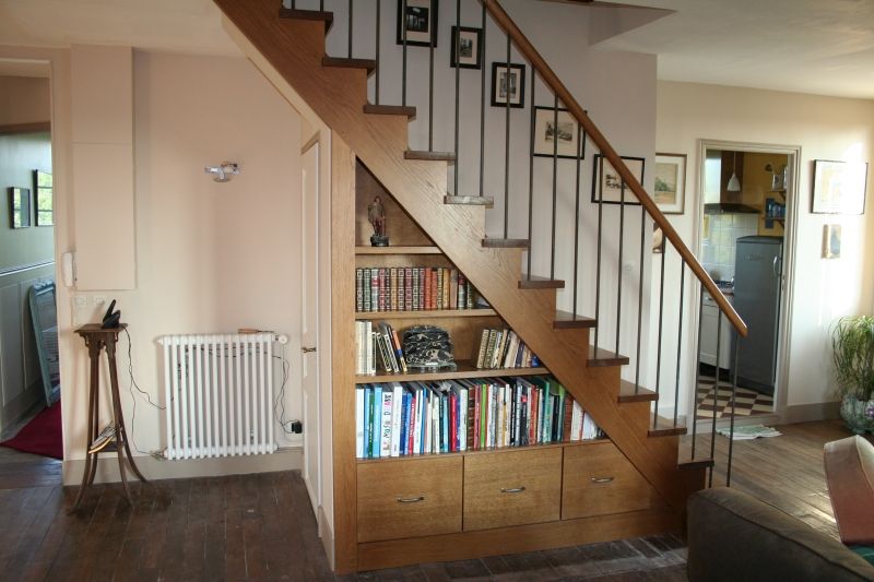 Dans certains lieux exigus, l'escalier peut devenir un espace de rangement et liberer la pièce.
